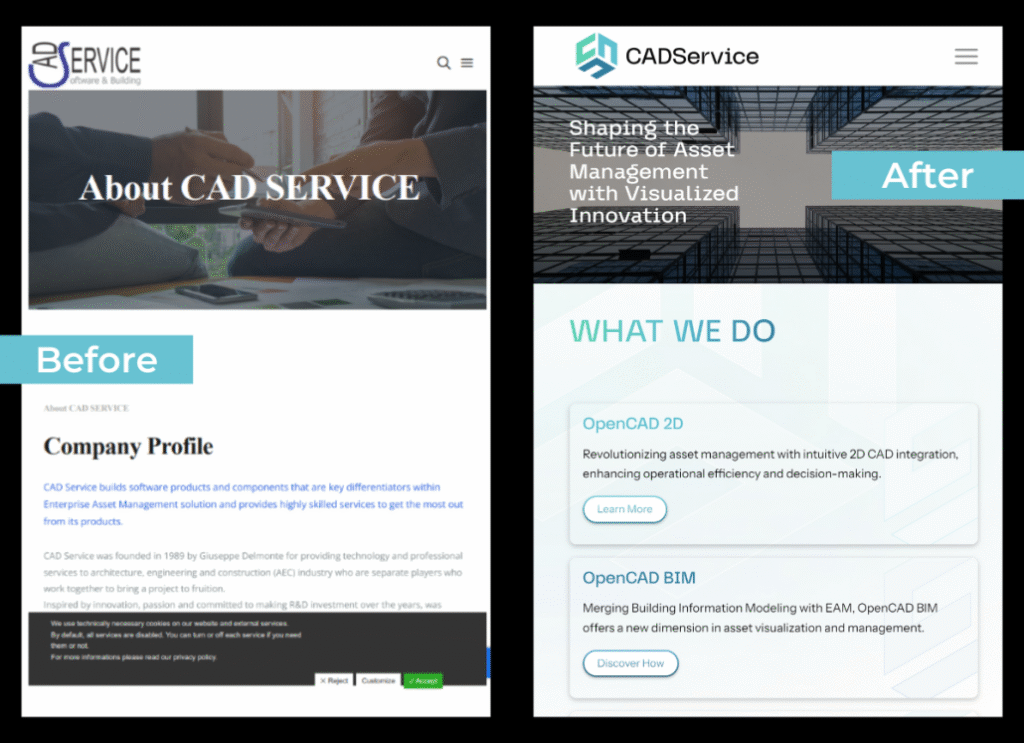 CAD Service was known internally as a trusted partner with deep technical expertise. However, their outdated website and unclear messaging severely limited their ability to effectively communicate their full value proposition externally.