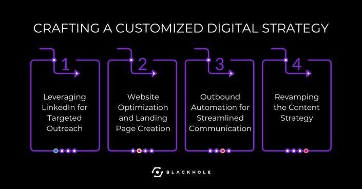 At Blackhole, we help our B2B clients navigate the complexities of digital marketing and stay ahead of the curve. We offer a range of services designed to meet the specific needs of B2B companies, from personalized outreach campaigns and content marketing to sales automation and beyond.